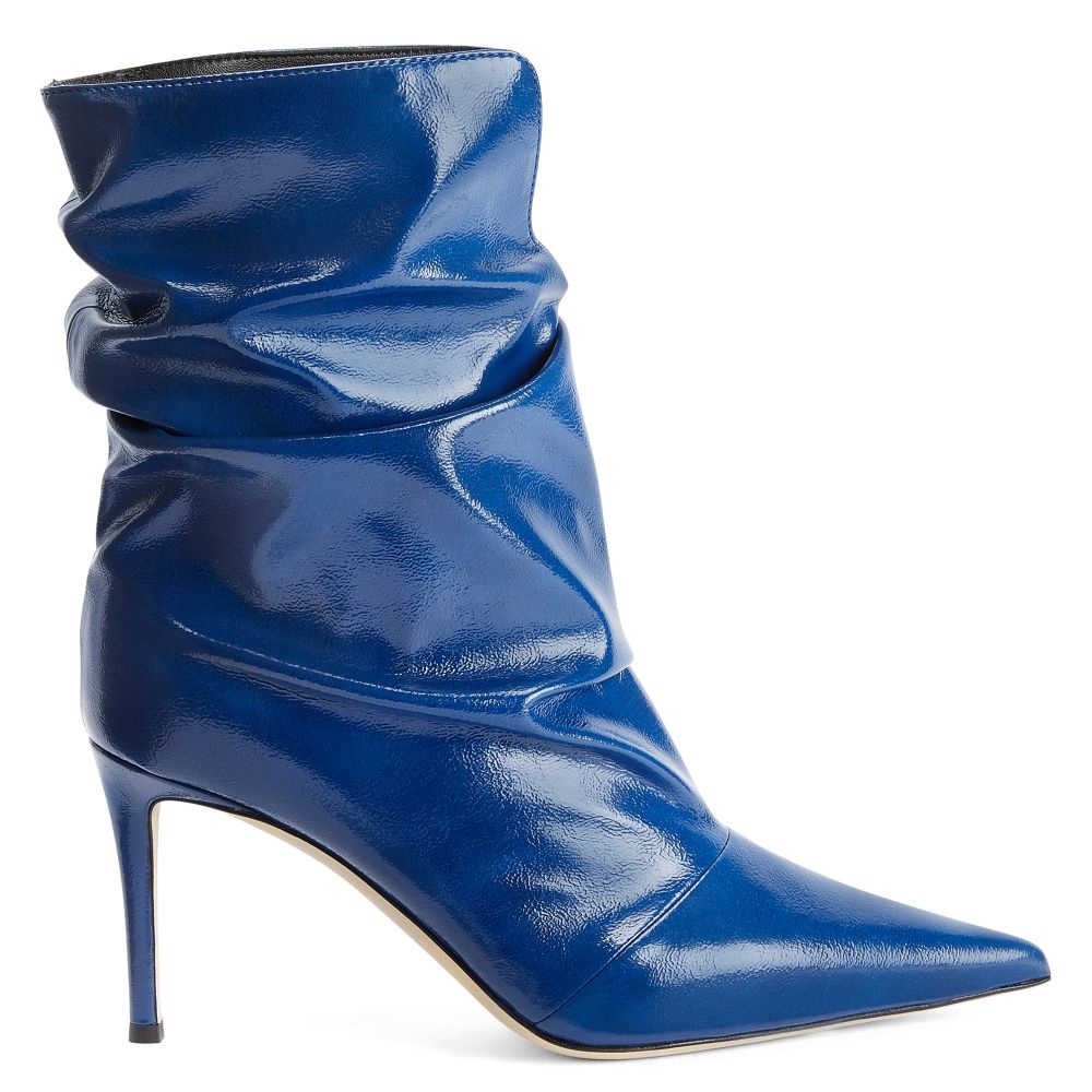 Product Details These ankle boots are crafted from patent-effect blue synthetic fabric and feature a soft shaft, matching covered stiletto heels and a leather sole. Patent-effect blue synthetic fabric Heel covered in patent-effect blue synthetic fabric 85 mm heel Leather sole with logo Made in Italy