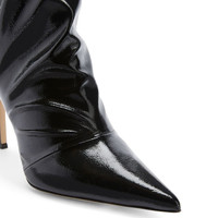 Product Details These ankle boots are crafted from patent-effect black synthetic fabric and feature a soft shaft, matching covered stiletto heels and a leather sole. Patent-effect black synthetic fabric Heel covered in patent-effect black synthetic fabric 105 mm heel Leather sole with logo Made in Italy