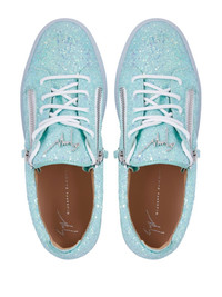 zip-detail glitter trainers light blue glitter detailing front lace-up fastening zip details silver-tone logo plaque pull-tab at the heel round toe transparent rubber sole Made in Italy Composition Outer: PVC 45%, Cotton made in Africa (CmiA) 30%, Water Adhesive 25% Lining: Fabric 100% Rubber 100%