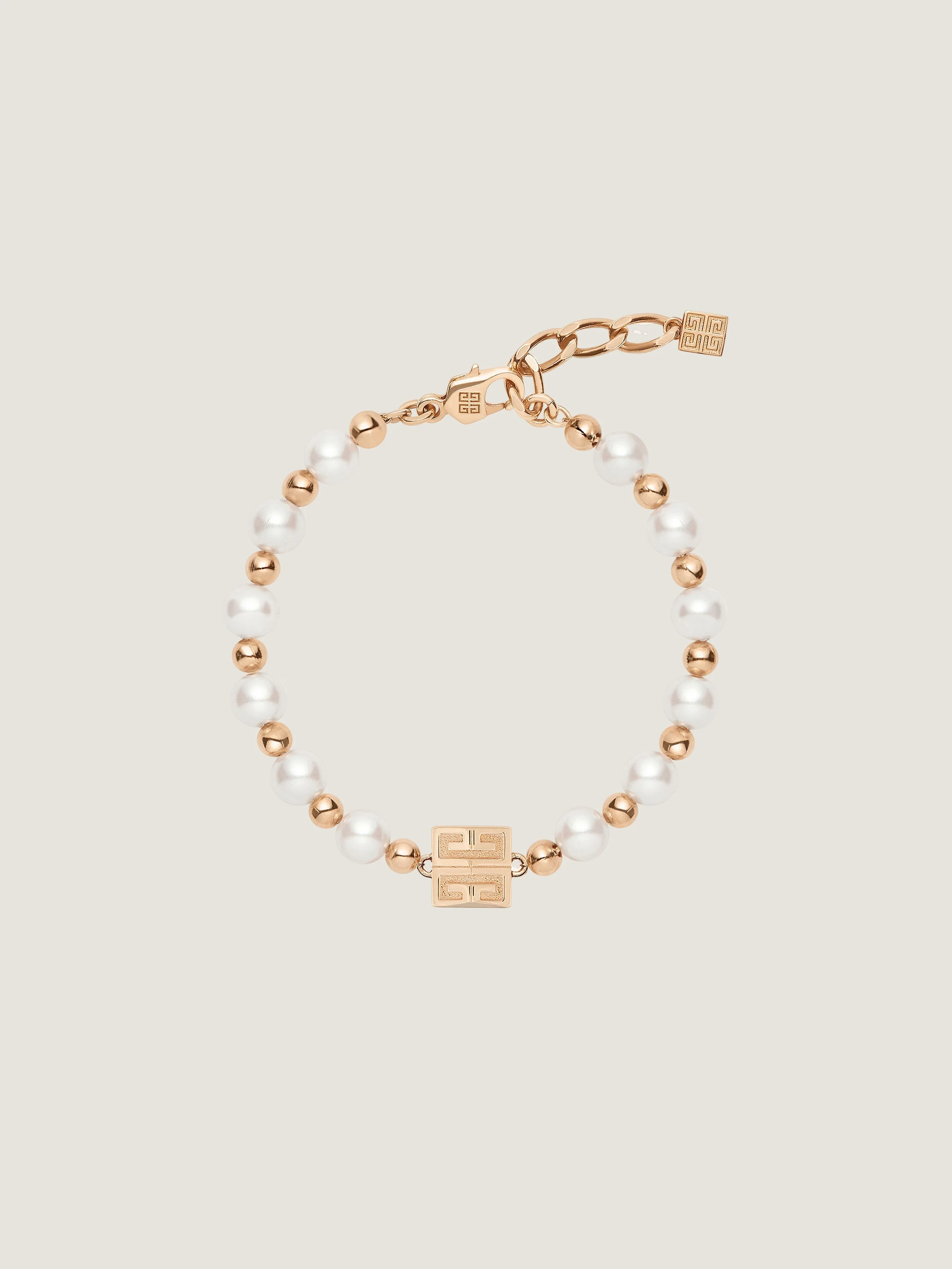 - Bracelet in pink golden-finish metal and pearls. - 4G line. - 4G emblem in pink golden-finished polished and brushed metal and resin pearls. - Adjustment chain with 4G plaque. - Adjustable chain length: 1 in. - Matching necklace, ring and earrings sold separately.