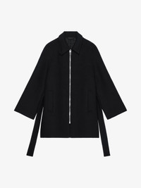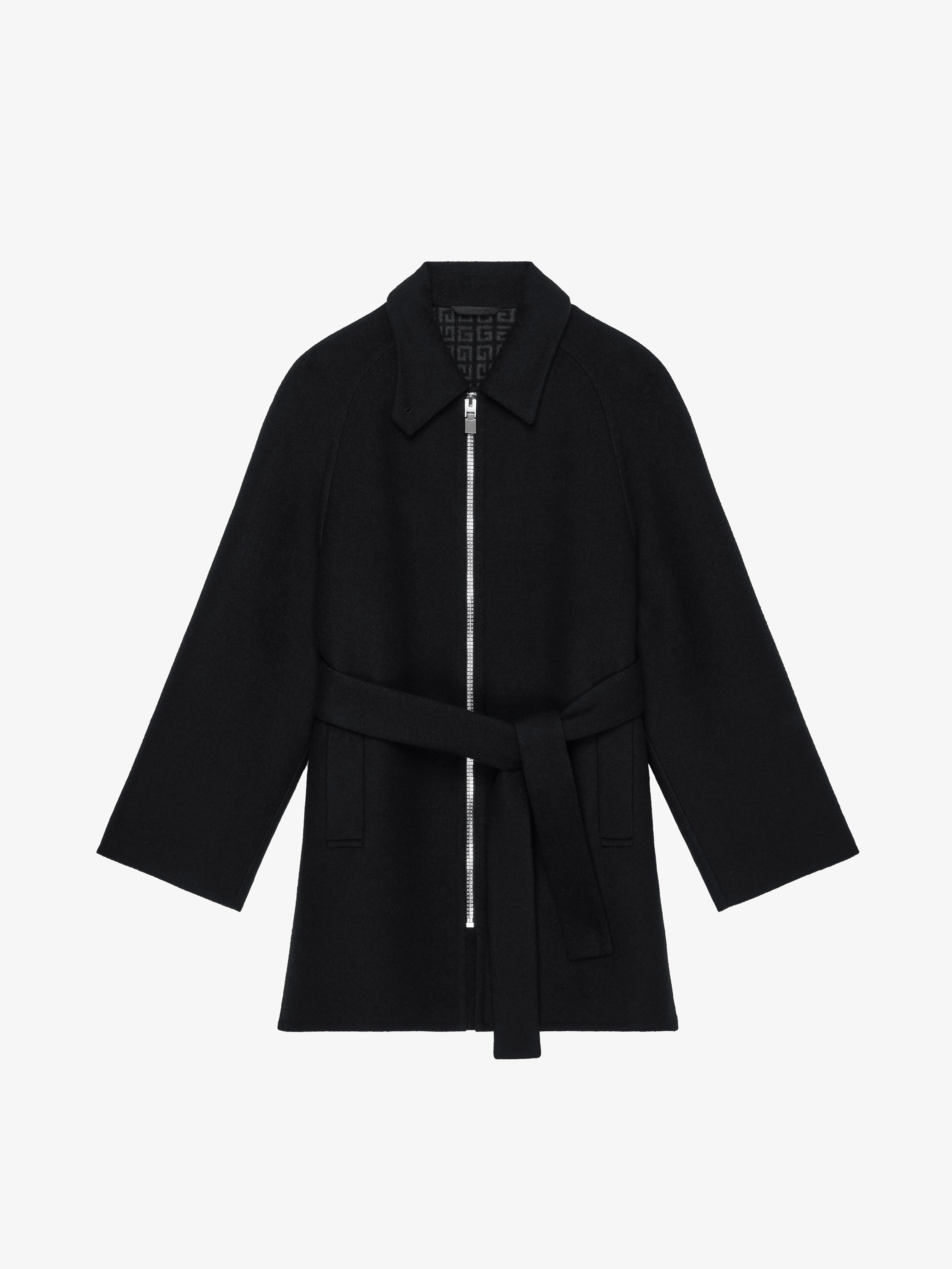 - Double face wool and cashmere coat with asymmetrical collar. - Slightly oversized, with a belt. - 4G zipped closure. - Two piped front pockets. - All-over 4G inside.