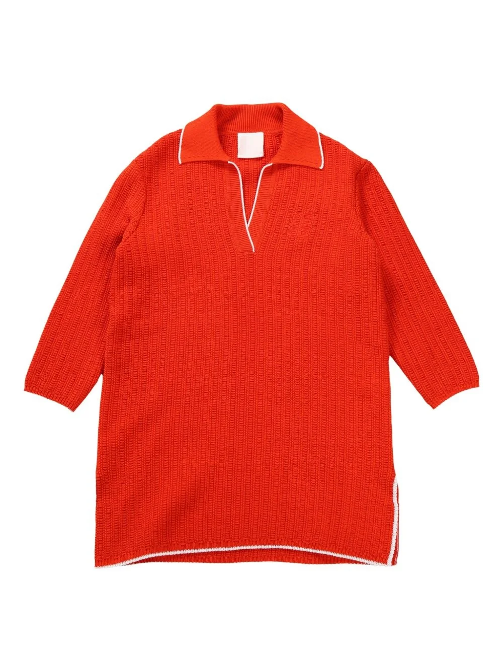 4g-embroidered mini dress Highlights - Lava orange - V-neck - Polo collar - Short side slits Made in Italy Composition Cotton 100%