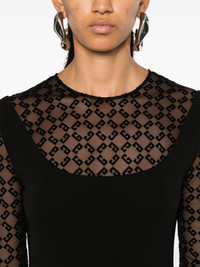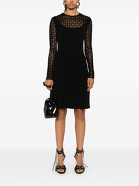 4G flocked midi dress Highlights - Black - Crepe texture - Flocked 4g motif - Semi-sheer mesh panels - Concealed rear zip fastening - Crew neck - Long sheer sleeves - Unlined - A-line skirt - Straight hem - Mid-length Made in Italy Composition Outer: Viscose 100% Lining: Polyamide 82%, Elastane 18% SIZE & FIT Model measurements Height 5 ft 10 in(1.77 m) Bust/Chest 31.88 in(81 cm) Hips 36.22 in(92 cm) Waist 24.01 in(61 cm) FittingInformation Designed for a close fit throughout Made from a midweight stretch fabric, this piece offers elasticity and flexibility when worn