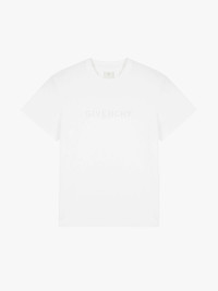 - Soft jersey T-shirt. - Color: optical white. - GIVENCHY signature on the chest and 4G emblem on the back in tone-on-tone bouclé knit. - Loose men's cut.
