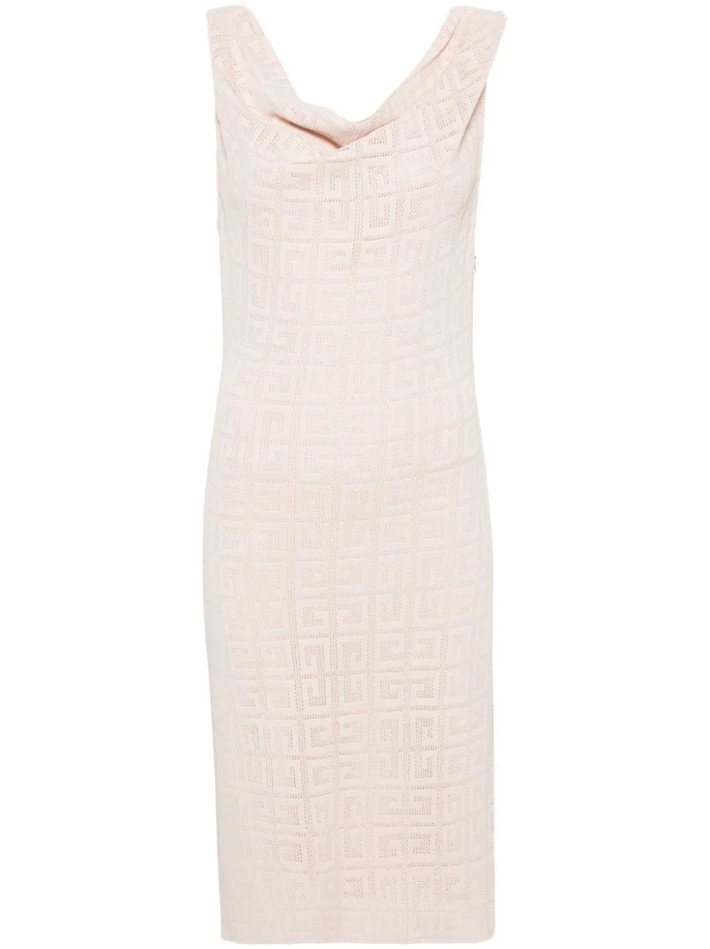4G-patterned midi dress Highlights - Blush pink - Stretch-design - Patterned jacquard - Signature 4g motif - Semi-sheer construction - Asymmetric design - Cowl neck - Sleeveless - Below-knee length - Straight hem - Internal slip dress - Pull-on style Made in Italy Composition Outer: Viscose 95%, Elastane 5% Lining: Viscose 100% SIZE & FIT Model measurements Height 5 ft 11 in(1.8 m) Bust/Chest 32.67 in(83 cm) Hips 36.22 in(92 cm) Waist 24.4 in(62 cm) FittingInformation Designed for a loose fit at the chest with a close fit over the waist and hips The detachable slip sits just away from the body, offering a close yet comfortable fit Made with a midweight knit, this piece offers some stretch This piece fits true to size – take your usual size