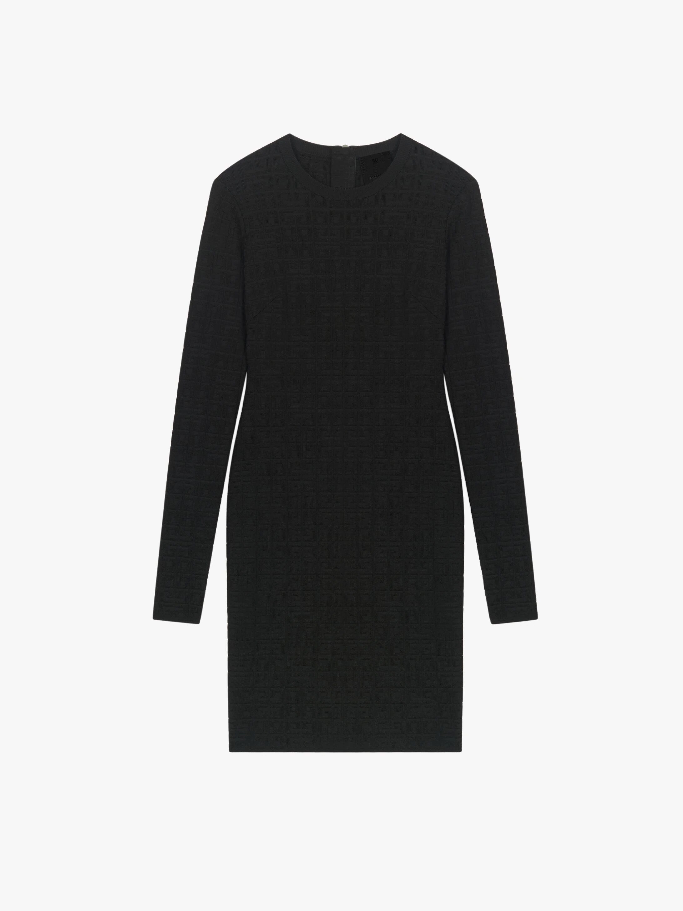- Mid-length long-sleeved dress in viscose jacquard with raised 4G pattern. - Crew neck. - Metal zipper closure on the back. - Comfortable fitted cut.