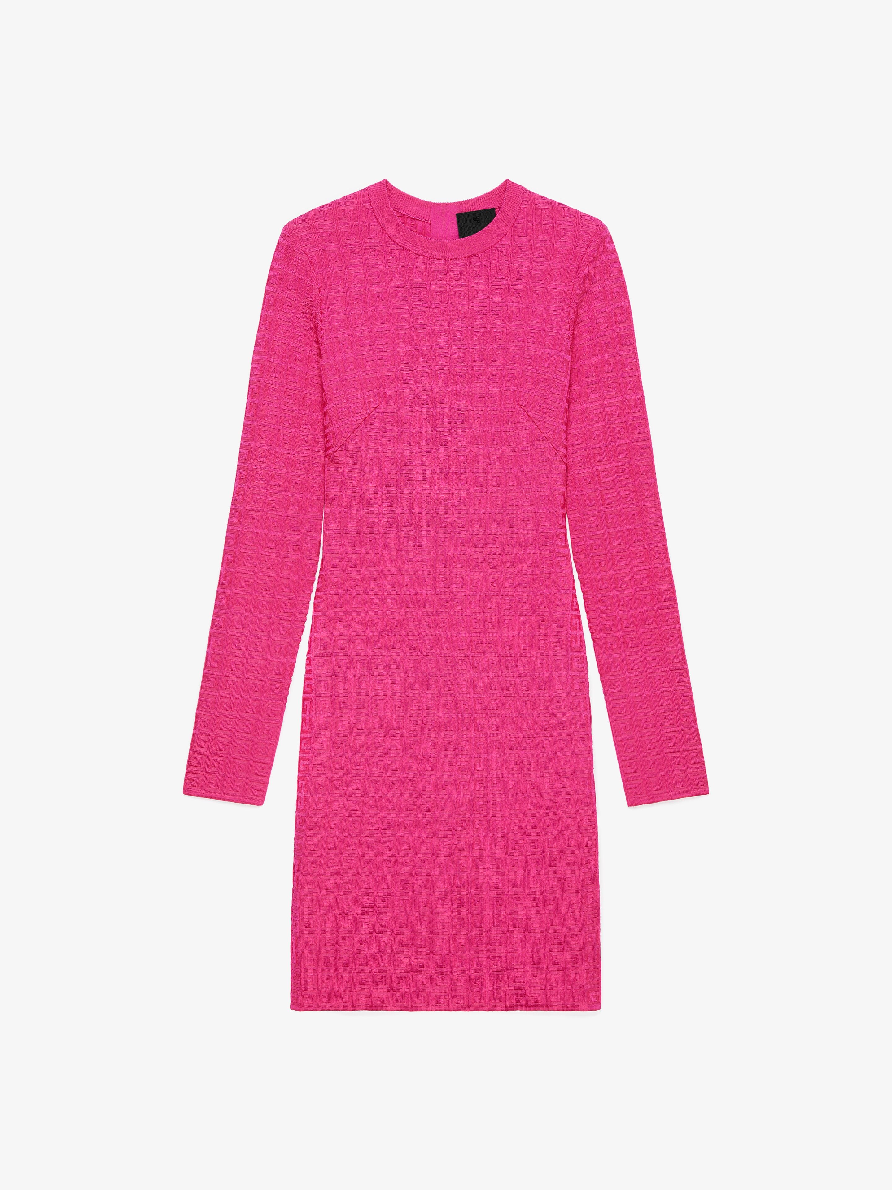 - Mid-length long-sleeved dress in viscose jacquard with raised 4G motif. - Crew neck. - Metal zipper closure on the back.