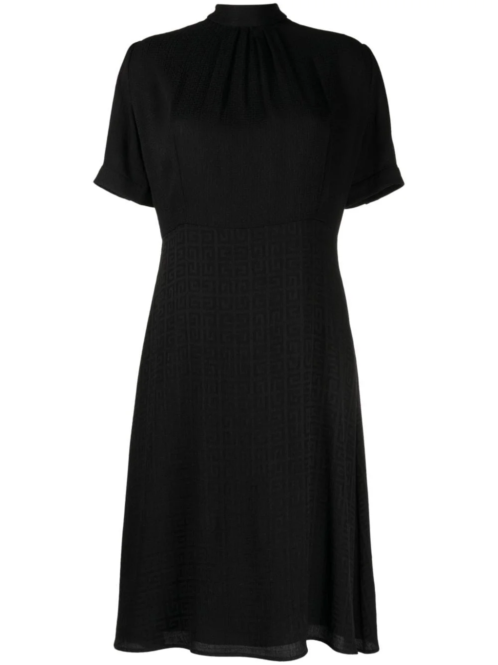 4G-jacquard silk midi dress Highlights - Black - Silk - Signature 4g motif - Monogram jacquard - Gold-tone buttons - Mock neck - Concealed rear zip fastening - Short sleeves - Buttoned cuffs - Knee-length - Straight hem Made in Italy Composition Lining: Acetate 73%, Silk 27% Outer: Silk 100% SIZE & FIT Model measurements Height 5 ft 10 in(1.77 m) Bust/Chest 31.49 in(80 cm) Hips 35.43 in(90 cm) Waist 25.19 in(64 cm) FittingInformation Designed for a slim fit that sits just away from the body offering a close yet comfortable fit Made from a lightweight non-stretch fabric This piece fits true to size – take your usual size