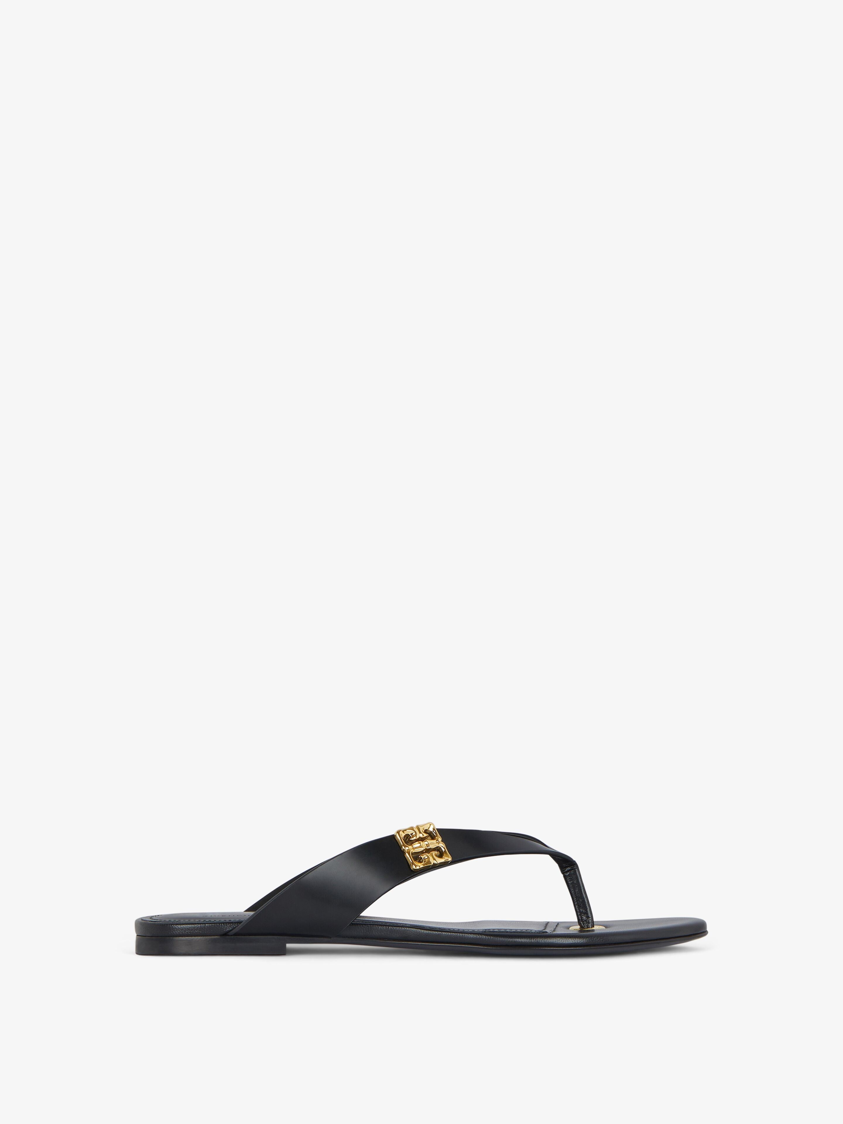 - Tong sandals in brushed calfskin leather. - 4G Liquid line. - 4G Liquid metal piece on the top. - GIVENCHY engraved metal eyelet. - GIVENCHY signature debossed on the leather insole. - Golden finish metal details.