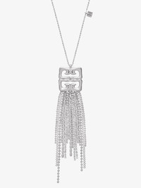 - Necklace in silvery-finish metal. - 4G Liquid line. - 4G Liquid pendant in silvery-finish metal with metal and Swarovski crystals fringes. - Small 4G cube in silvery-finish metal. - Adjustment chain with 4G plaque. - Adjustment chain length: 1.4 in. - Matching earrings sold separately.