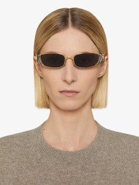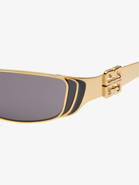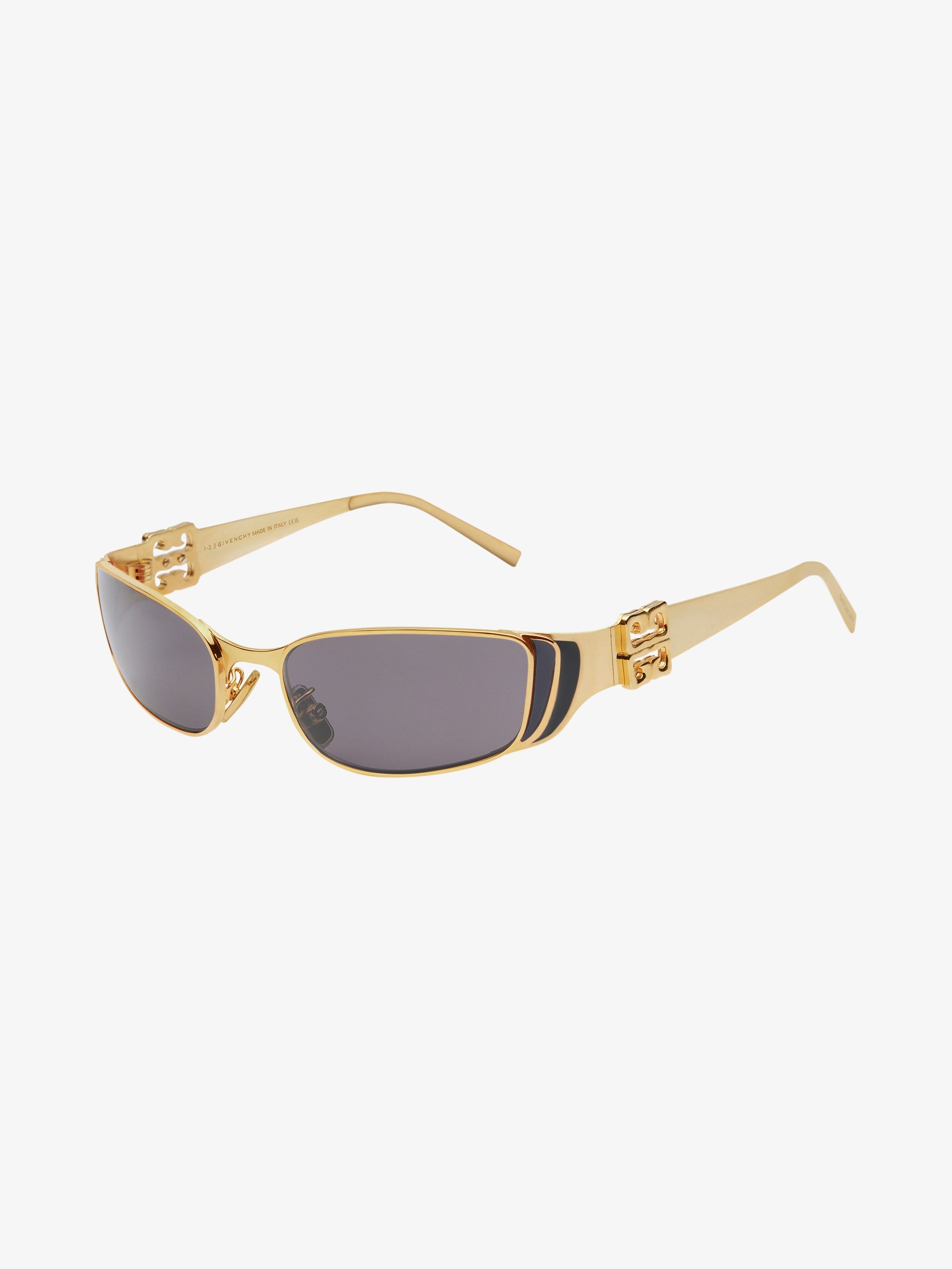 - Sunglasses in metal and enamel. - 4G Liquid line. - Small wrap-around cat-eye shape with flower petal-inspired finish. - Gradient color palette on the petals in hand-painted enamel. - Smoke lenses. - 4G Liquid hinges in metal. - GIVENCHY signature on the temples. - 100% UVA/UVB protection. - Weight: 36g. - Model comes in a soft case.