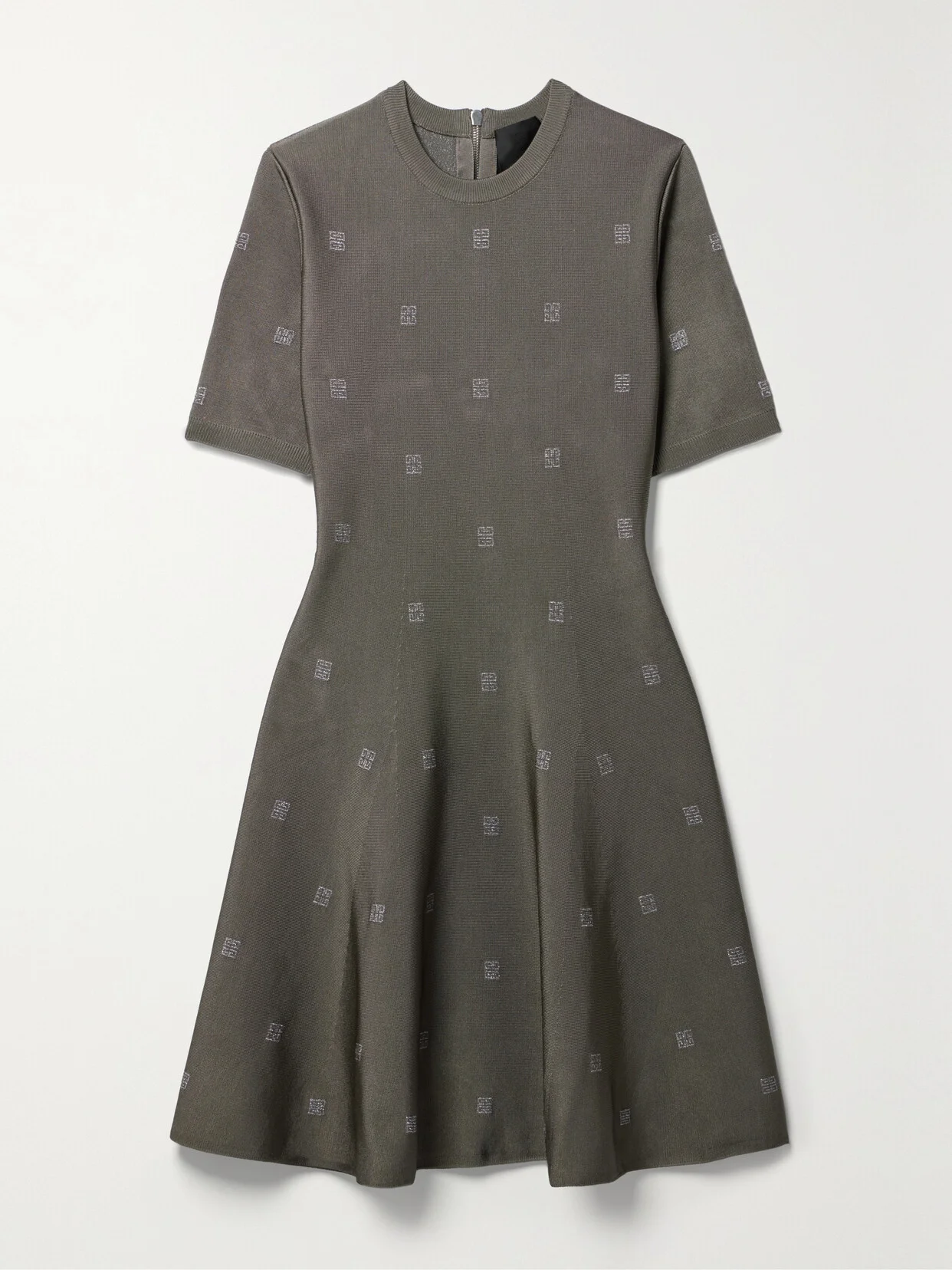 Givenchy's mini dress is jacquard-knit with the label's signature '4G' logo in gray threads - match your accessories to the icy color. The smooth, stretchy fabric hugs your bodice before gently flaring out to a full A-line skirt.