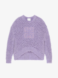- Long-sleeved sweater in openwork wool and mohair knit. - Crew neck and low shoulders. - Oversized 4G emblem on the front. - Ribbed collar, hem and cuffs. - Model measures 5.8 Feet and wears a size XS.