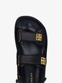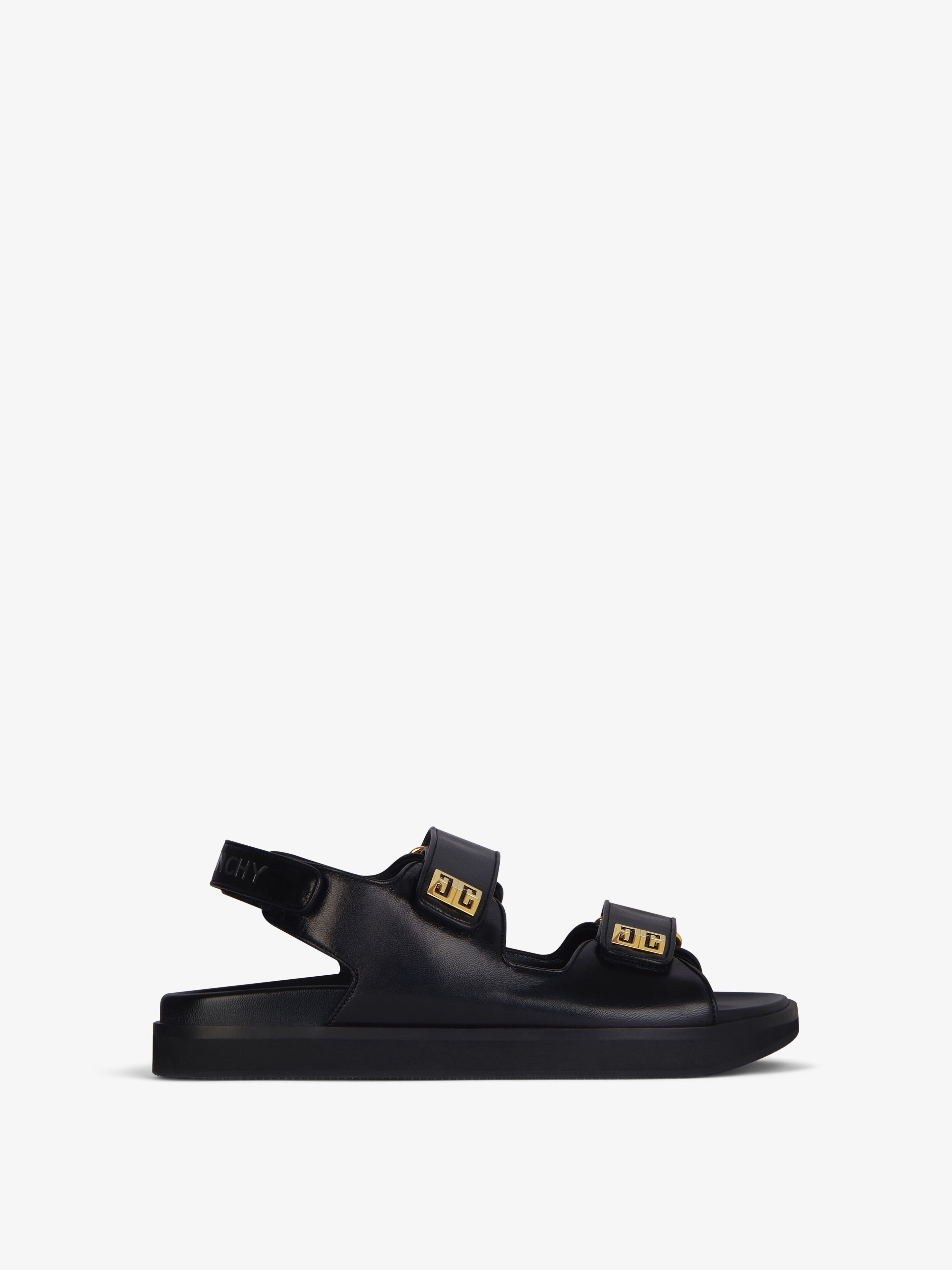 - Sandals with straps in leather. - 4G line. - Adjustable scratch straps with golden-finish metal 4G piece on the upper bands. - Leather insole with golden GIVENCHY signature. - GIVENCHY signature embossed on the back. - Light and confortable soles.