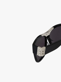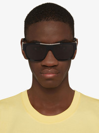 - Acetate sunglasses. - Color: black. - Square shape. - Gray lenses. - 4G hinges in silver-finish metal. - GIVENCHY-engraved metal plaque on the bridge. - UV protection rating: 3. - Model comes in a hard case.