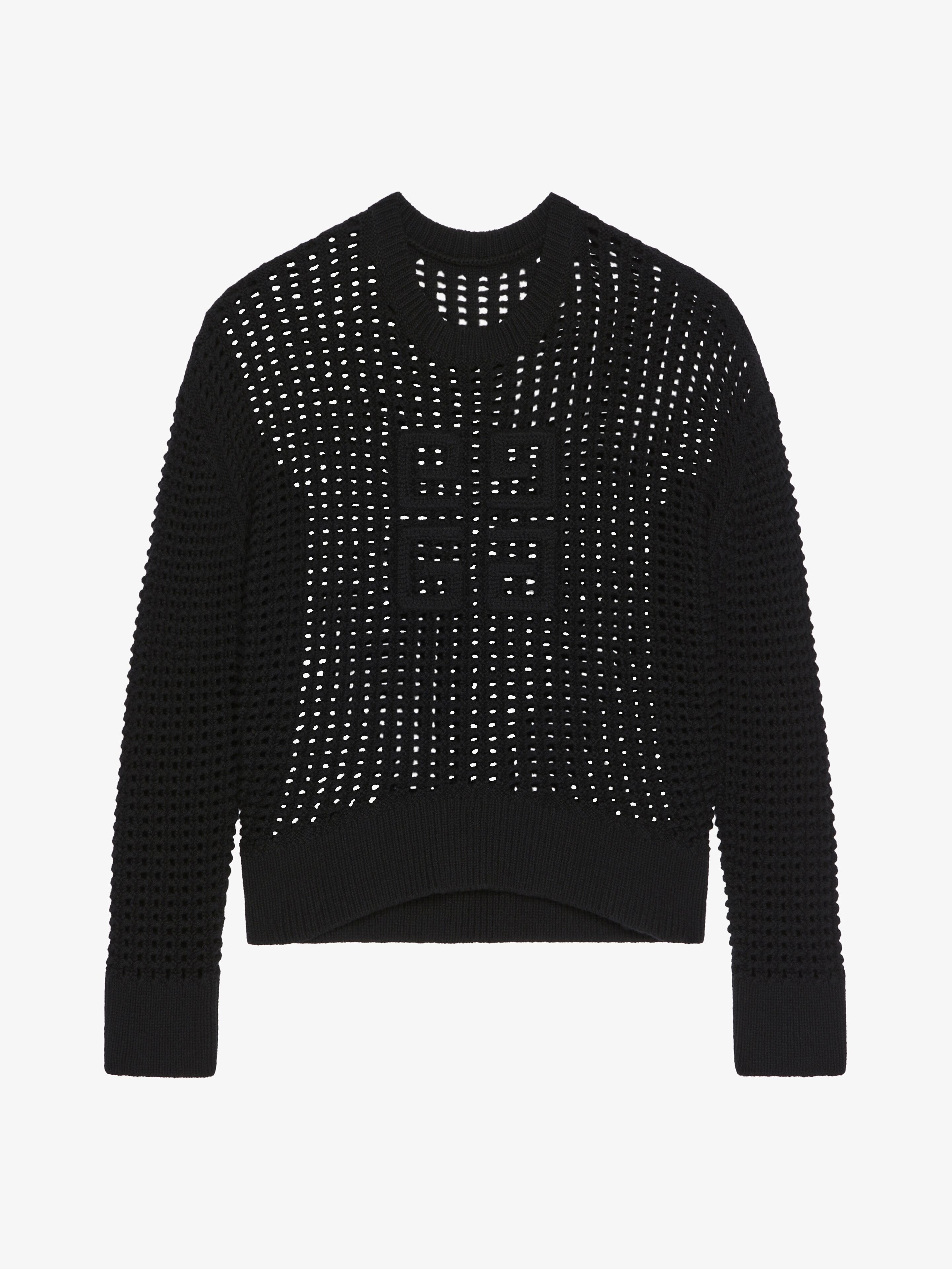 - Long-sleeved openwork sweater in wool and cashmere. - Crew neck. - Oversized 4G emblem in crochet on the front. - Ribbed collar, hem and cuffs. - Classic fit. - Model measures 5.8 Feet and wears a size XS.