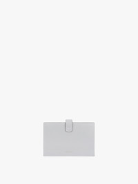 - Wallet in smooth Box calfskin leather. - Color: cloudy gray. - Press stud closure. - Tab with 4G silver-finish metal buckle. - Silver GIVENCHY signature on the back. - Four flat pockets, one bill pocket, one coin pocket with 4G press stud, and five card slots. - Lambskin leather lining.