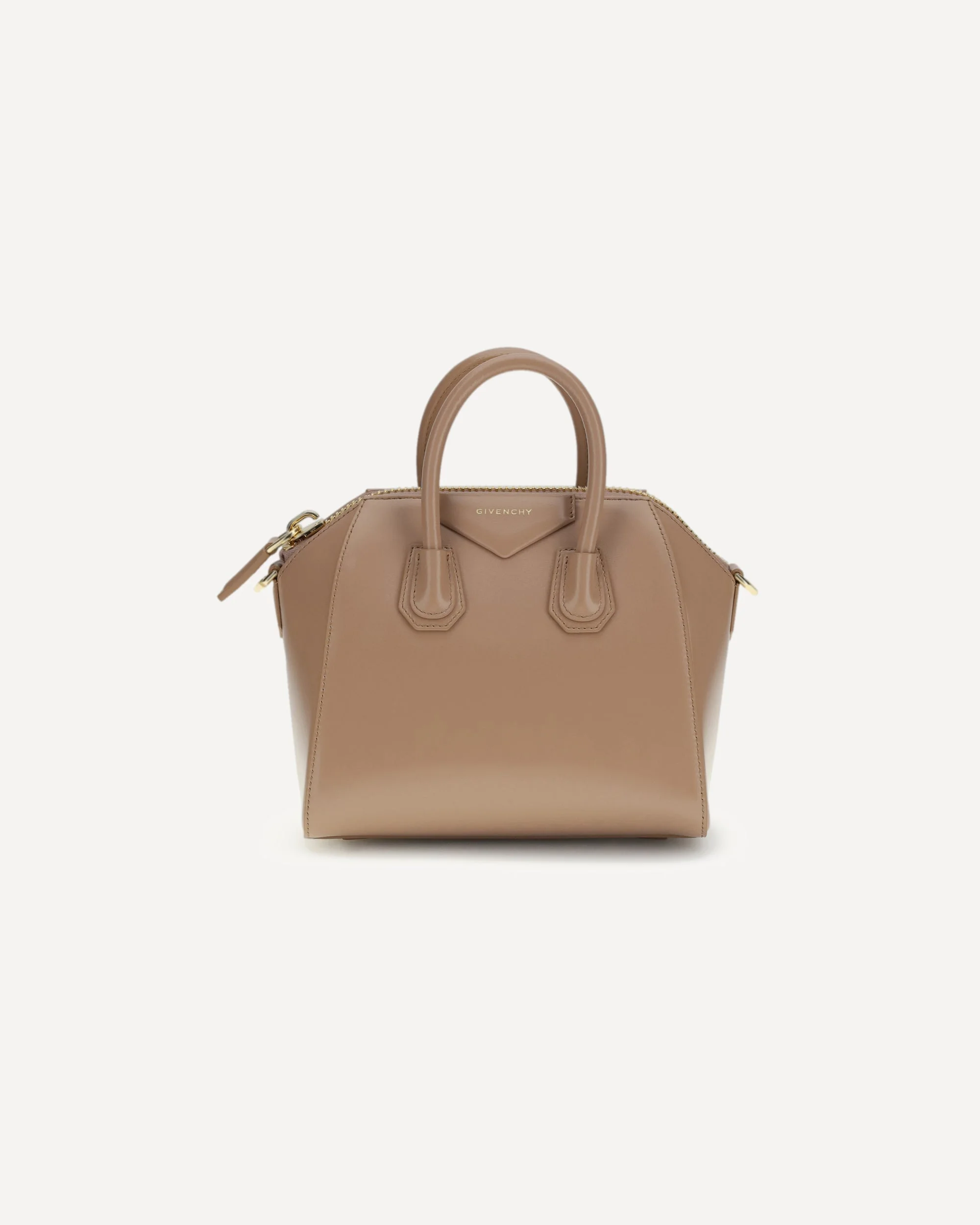 The Antigona leather mini Handbag by Givenchy features a geometric design and shiny leather that enhances its elegance. Featuring two stiff top handles, it has a double-slider zipper closure and the iconic contrasting monogram on the front. The adjustable and removable shoulder strap provides versatility, while the support feet at the base protect the model while keeping it flawless at all times. DETAILS - Sku: BB5148B13A_682 - Season: SS26 - Dimension: 19x26x13 - Composition: GENERAL 100% Calf Leather Bos Taurus - MADE IN ITALY