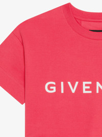 - Short-sleeved t-shirt in cotton. - Archetype line. - Ribbed crew neck. - GIVENCHY signature printed on the front. - Small 4G emblem printed on the lower back. - Cropped fit. - Model measures 69.7 in and wears a size XS.