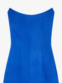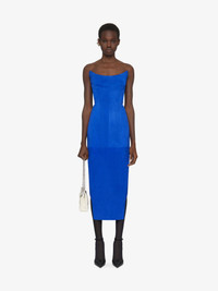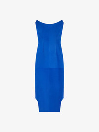 - Long bustier dress in suede leather. - Asymmetrical length: long with cut-outs on the front, short on the back. - Invisible zipped closure on the side. - Fitted cut. - Model measures 5.8 Feet and wears a size 36.