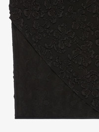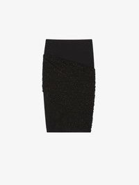 - Asymmetric mid-length skirt in jersey. - Textured jersey on top and raised floral pattern on the rest of the skirt. - Draped. - Invisible zipped closure on the side. - Model measures 5.8 Feet and wears a size 36.