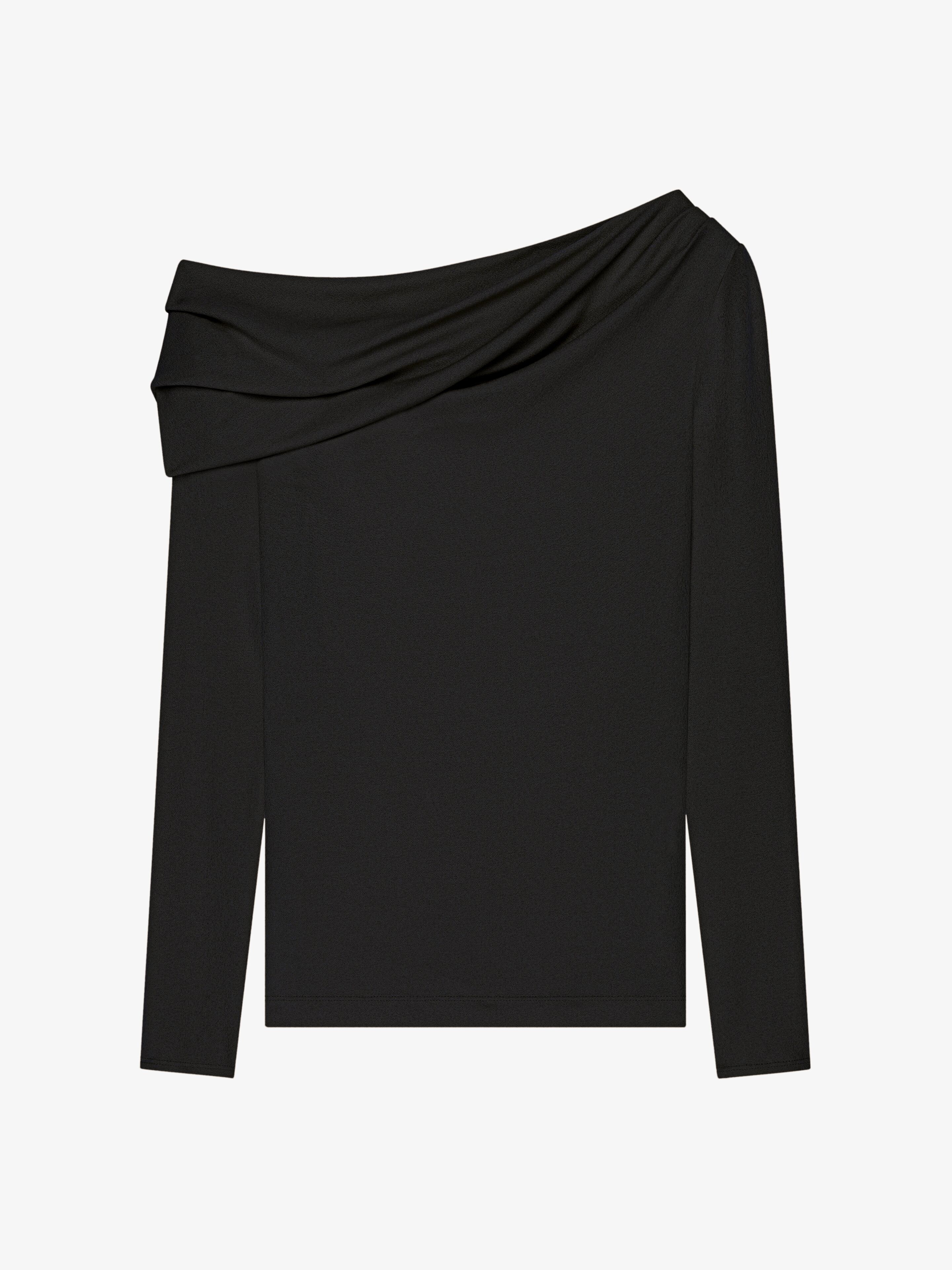 - Long-sleeved top in crepe jersey. - Asymmetric draped collar. - Model measures 5.8 Feet and wears a size 36.