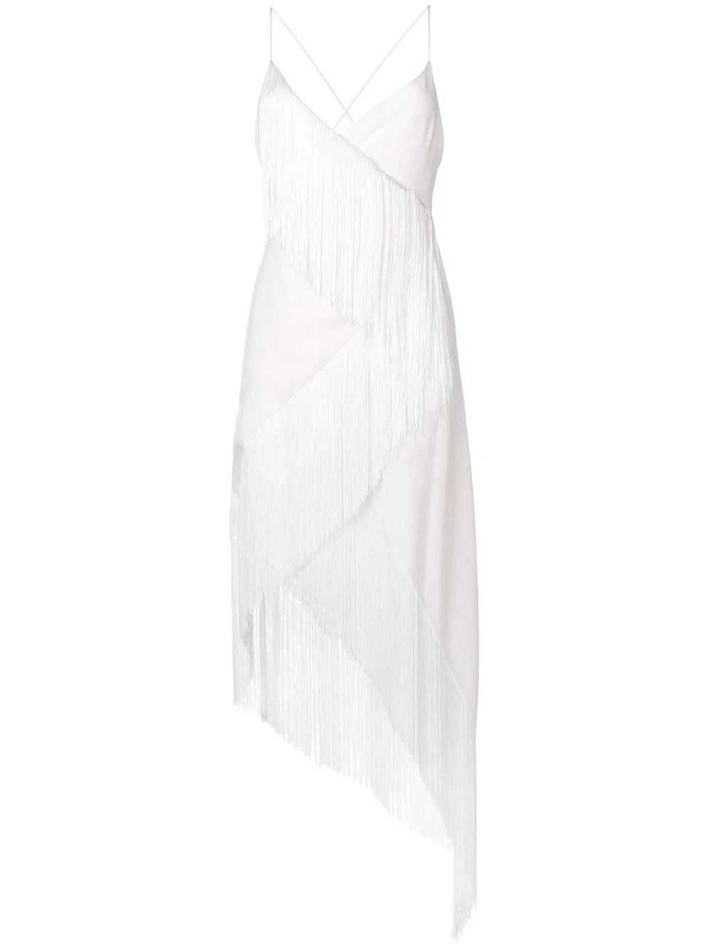 asymmetric fringe embellished dress Givenchy is an international luxury brand, known worldwide for its Haute Couture and ready-to-wear collections. His sophisticated manner and very feminine style was injected into this spring collection. This white wool silk asymmetric fringe embellished dress from Givenchy featuring spaghetti straps, a v-neck and a fitted waist. Made in Italy Composition Acetate 100%, Wool 100%, Silk 100% SIZE & FIT Model measurements Height 5 ft 10 in(1.78 m) Bust/Chest 33.46 in(85 cm) Hips 36.22 in(92 cm) Waist 23.22 in(59 cm) Washing instructions Dry Clean Only