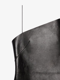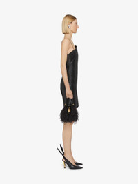 - Mini dress in nappa leather . - Thin straps and asymmetric collar. - Invisible zipped closure on the side. - Asymmetric bottom. - Fitted cut. - Model measures 5.8 Feet and wears a size 36.