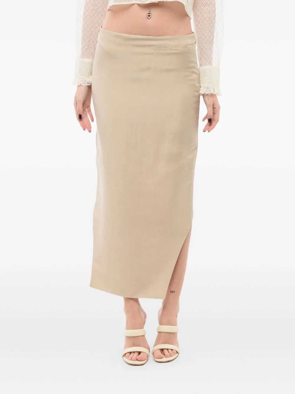 asymmetric silk skirt Highlights - Beige - Concealed side zip fastening - Low-rise - Side slit - Mid-length Made in Italy Composition Silk 100%