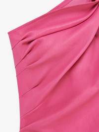 - Asymmetrical mini-dress in supple lambskin leather. - One wide strap with graphic cut-out, and wrapped and draped effect. - Zipper closure on the back.