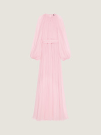 - Balloon sleeve long evening dress in silk chiffon. - Crew neck. - Small slit on the neckline. - Invisible zipped closure on the back. - Opaque lining. - Model measures 5.8 Feet and wears a size 36.