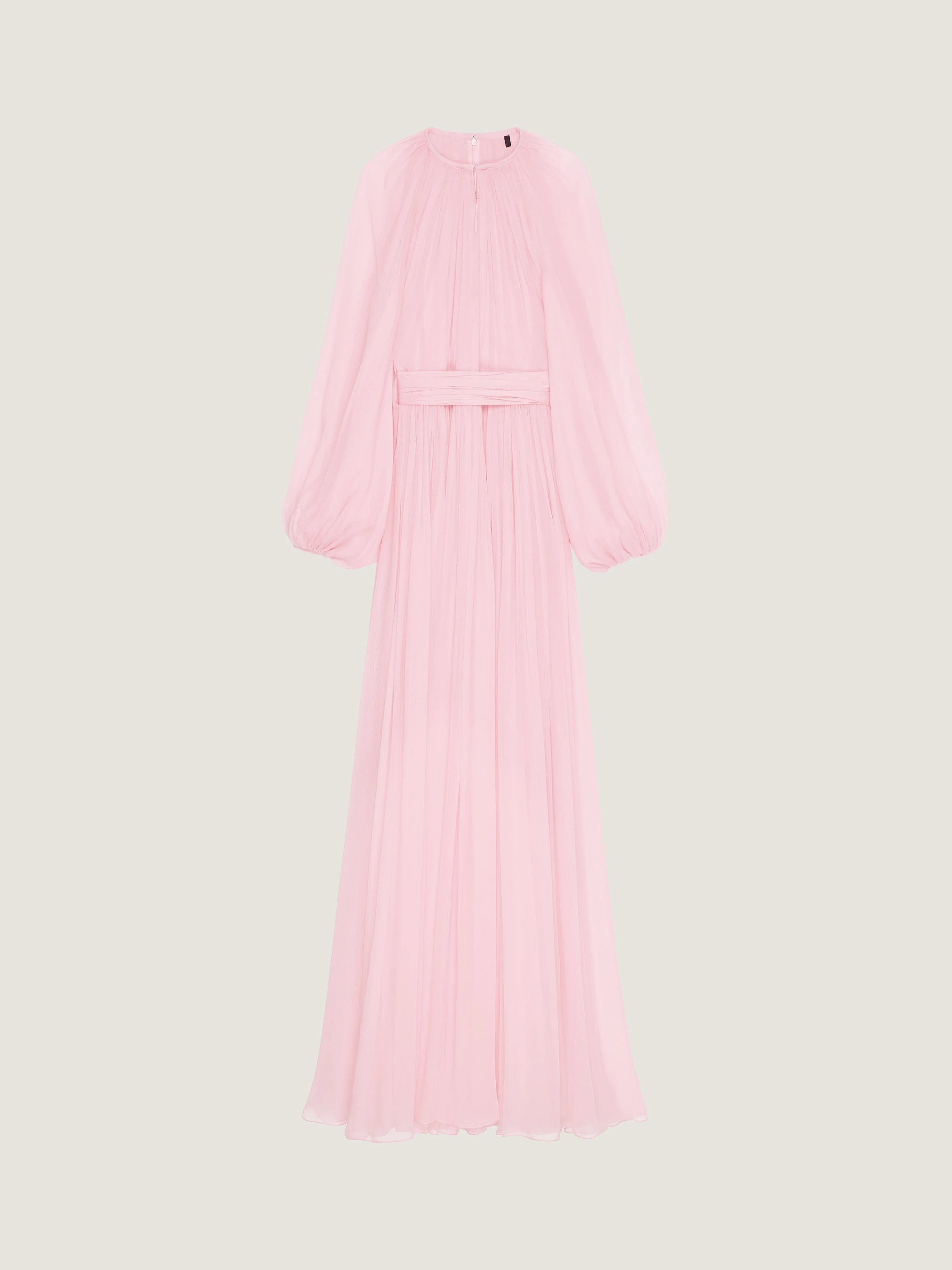 BALLOON SLEEVES EVENING DRESS IN SILK CHIFFON