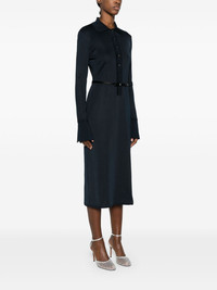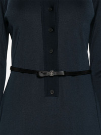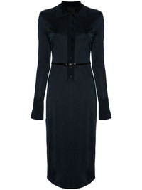 belted polo-collar midi dress Highlights - Navy blue - Jersey texture - Detachable waist belt - Polo collar - Front button fastening - Long sleeves - Split cuffs - Pencil silhouette - Straight hem - Mid-length Made in Italy Composition Viscose 78%, Polyamide 20%, Elastane 2% SIZE & FIT Model measurements Height 5 ft 10 in(1.77 m) Bust/Chest 29.92 in(76 cm) Hips 34.25 in(87 cm) Waist 23.62 in(60 cm) FittingInformation Designed for a slim fit that sits just away from the body offering a close yet comfortable fit The belt offers adjustability for fitted preferences Made from a midweight non-stretch fabric This piece fits true to size – take your usual size