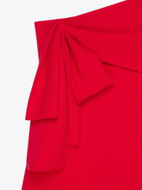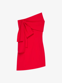 - Mini dress in sable stretch. - Asymmetric bustier. - Oversized bow on the side. - Invisible zipped closure on the side. - Asymmetric bottom. - Fitted cut. - Model measures 5.8 Feet and wears a size 36.