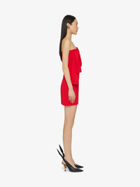 BUSTIER DRESS IN SABLE STRETCH WITH OVERSIZED BOW
