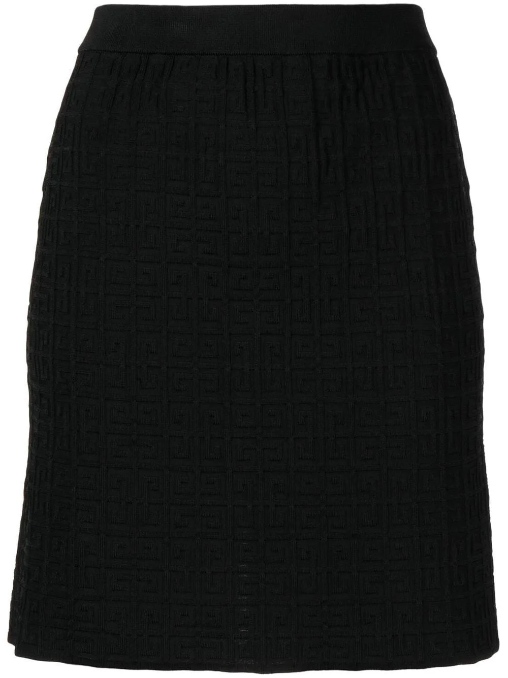 4G monogram-jacquard mini skirt black signature 4G motif monogram jacquard concealed rear zip fastening elasticated waistband rear slit straight hem above-knee length Made in Italy Composition Viscose 94%, Polyamide 5%, Elastane 1% SIZE & FIT Model measurements Height 5 ft 9 in(1.76 m) Bust/Chest 29.13 in(74 cm) Hips 33.07 in(84 cm) Waist 22.83 in(58 cm) FittingInformation This piece fits true to size. We recommend you get your regular size Cut for a close fit Designed to be fitted at the waist and hips, loose over the leg Made with a mid-weight fabric