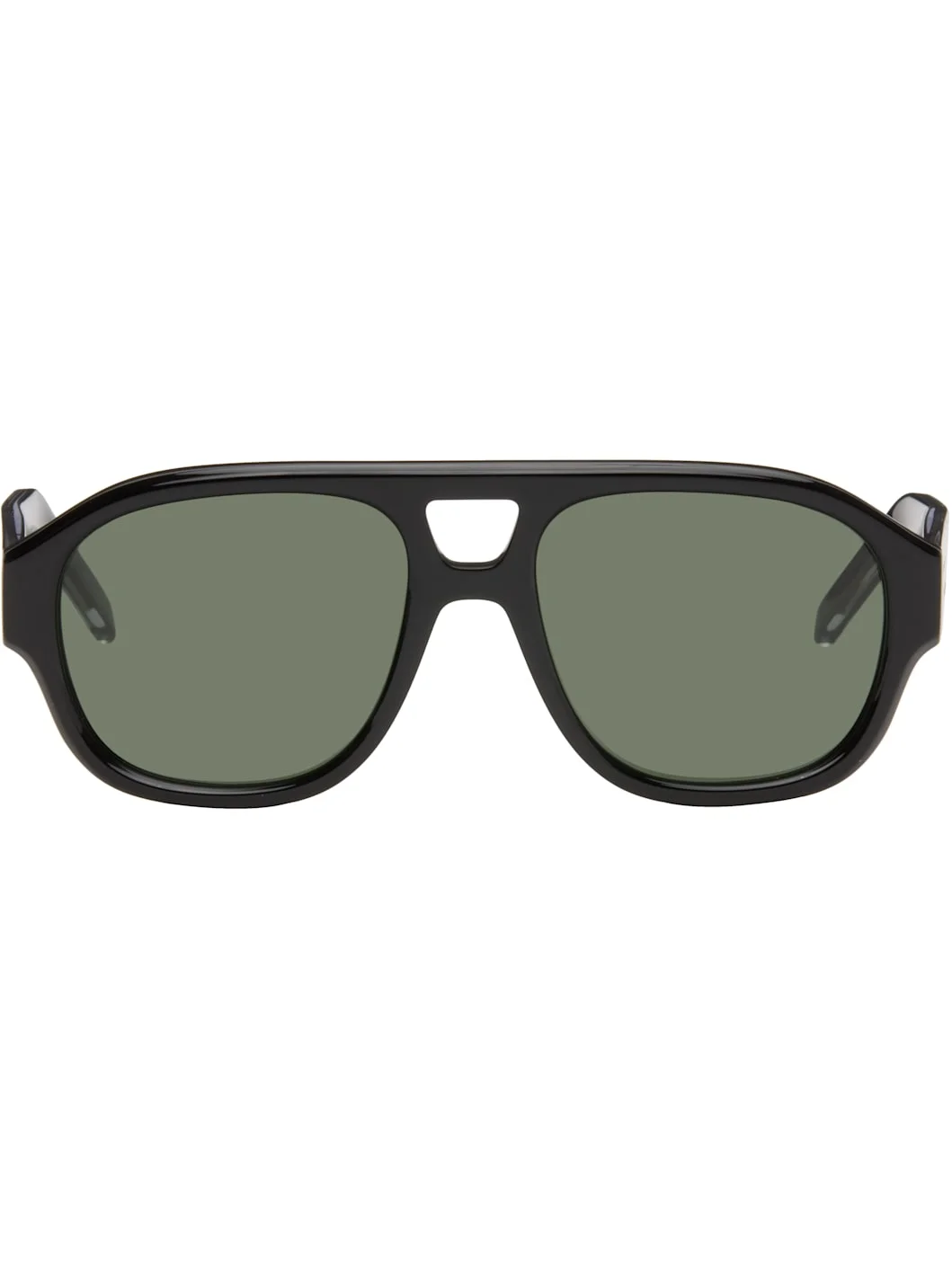 Aviator-style acetate-frame sunglasses. · Green lenses · 100% UVA/UVB protection, category 3 · Integrated nose pads · Double bridge · Logo plaque at temples · Core wires · Includes pouch · Size: 55.18 145 Supplier color: Black Acetate. Made in Italy 261278F005009