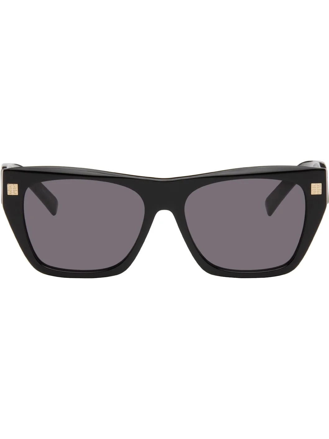 Cat-eye acetate-frame sunglasses. · Gray lenses · 100% UVA/UVB protection, category 3 · Integrated nose pads · Logo hardware at face · Logo engraved at temples · Includes pouch · Size: 55.16 140 Supplier color: Shiny black Acetate. Made in Italy 252278F005016