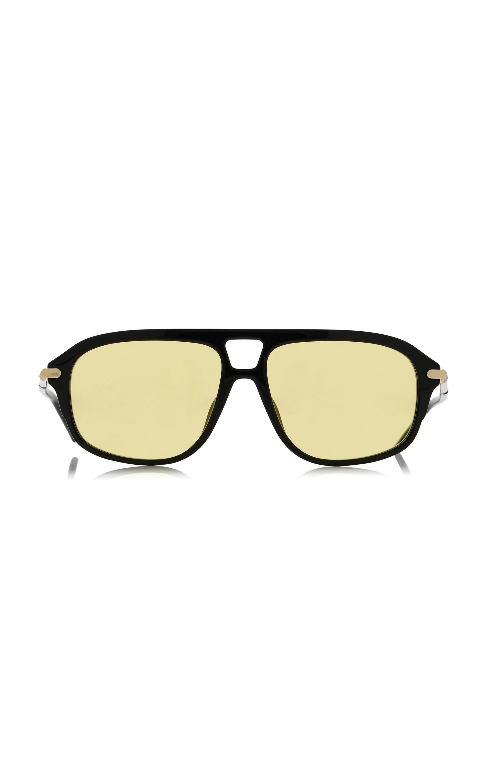 One of the first luxury ready-to-wear houses, Givenchy has been sensuously reinterpreting the codes of elegance, sophistication and femininity since it was founded in 1952. The 'One' sunglasses have aviator frames made from glossy acetate with Guilloche metal temples and yellow nylon lenses. PRODUCT DETAILS - Composition: acetate, metal, nylon - 100% UVA/ UVB protection - Made in Italy