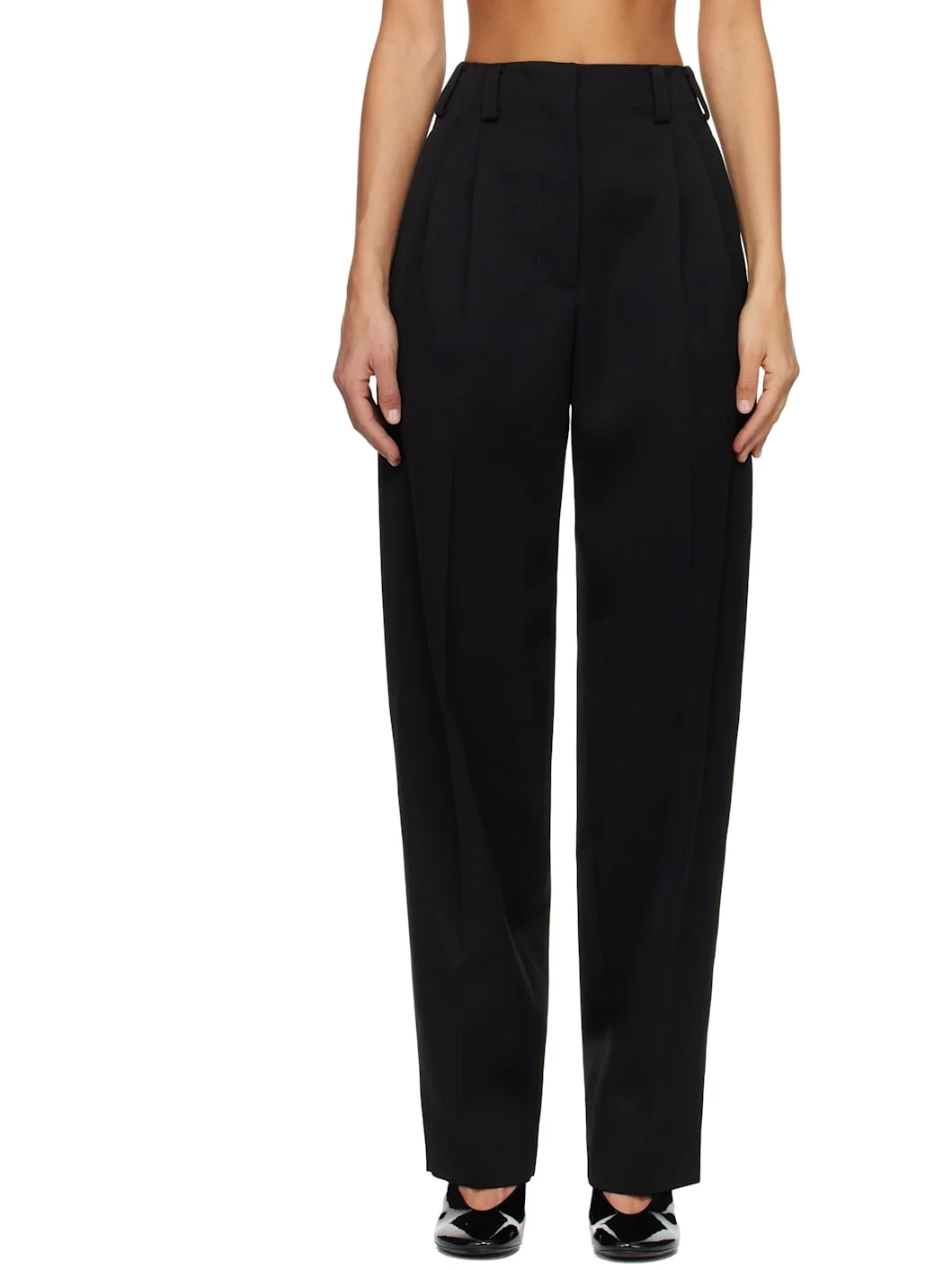 Wool grain de poudre trousers. · Belt loops at partially elasticized waistband · Three-pocket styling · Zip-fly · Pleats at front · Central crease at front · Cutout at back legs Supplier color: Black 100% wool. Made in Italy 252278F087005