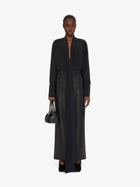 - Long-sleeved blouse in crepe de Chine silk with long buttoned removable lavalliere. - Plunging V neckline. - Buttoned cuff.