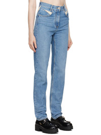 Slim-fit non-stretch denim jeans. Fading and whiskering throughout. · Belt loops · Four-pocket styling · Zip fly · Rivets at front and back · Logo embroidered at back waistband · Contrast stitching in tan Supplier color: Denim blue Body: 100% cotton. Trim: 100% cotton. Made in Italy 251278F069000