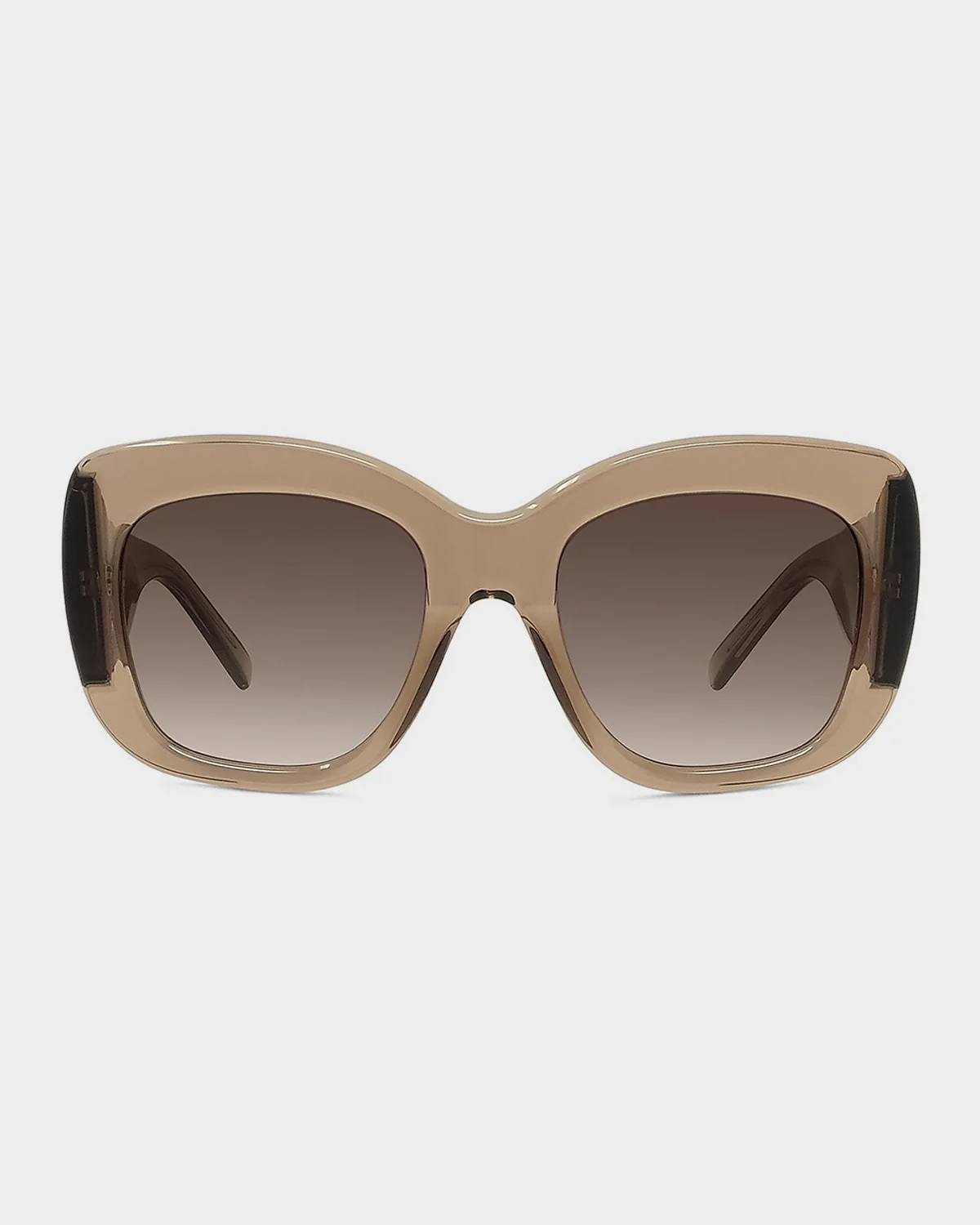 From the Bold line, these sunglasses by Givenchy are crafted from semi-transparent acetate with the signature engraved on the temples. Lens/bridge/temple (in mm): 53-20-135 Oversized square frames Gradient lenses Fixed nose pads Wide, tapered arms 100% UVA/UVB protection Made in Italy