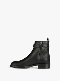 - Flat boots in leather. - Color: black. - Round-toe. - Crisscross band around the ankle. - Detachable metal 4G padlocks. - Zipper closure.