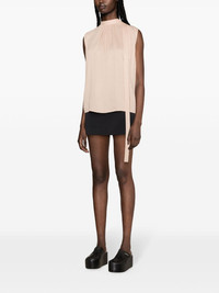 mock-neck silk blouse Highlights - Blush beige - Silk - Crepe texture - Signature 4g motif - Monogram jacquard - Pleat detailing - Mock neck - Gathered neckline - Side button and tie fastening - Sleeveless - Straight hem Made in Italy Composition Silk 100% SIZE & FIT Model measurements Height 5 ft 11 in(1.8 m) Bust/Chest 34.25 in(87 cm) Hips 35.82 in(91 cm) Waist 24.8 in(63 cm) FittingInformation Designed for a relaxed fit, this piece allows for comfort and movement when worn Made from a midweight non-stretch fabric This piece fits true to size – take your usual size