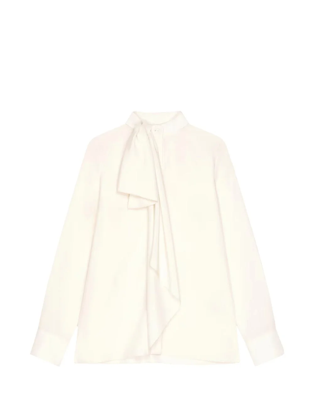 bow-detail blouse Highlights - White - Front bow detail - Button closure - Long sleeves - Buttoned cuffs Made in Italy Composition Silk 100% Washing instructions Read Manufacturer Guidelines