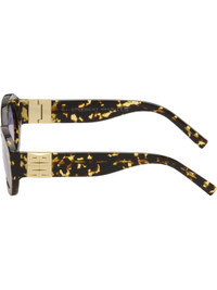 Round tortoiseshell bio acetate-frame sunglasses. · Gradient blue lenses · 100% UVA/UVB protection, category 2 · Integrated nose pads · Logo hardware at temples · Exposed core wires · Gold-tone hardware · Includes pouch · Size: 52.22 130 Supplier color: Coloured havana Acetate. Made in Italy 252278F005020