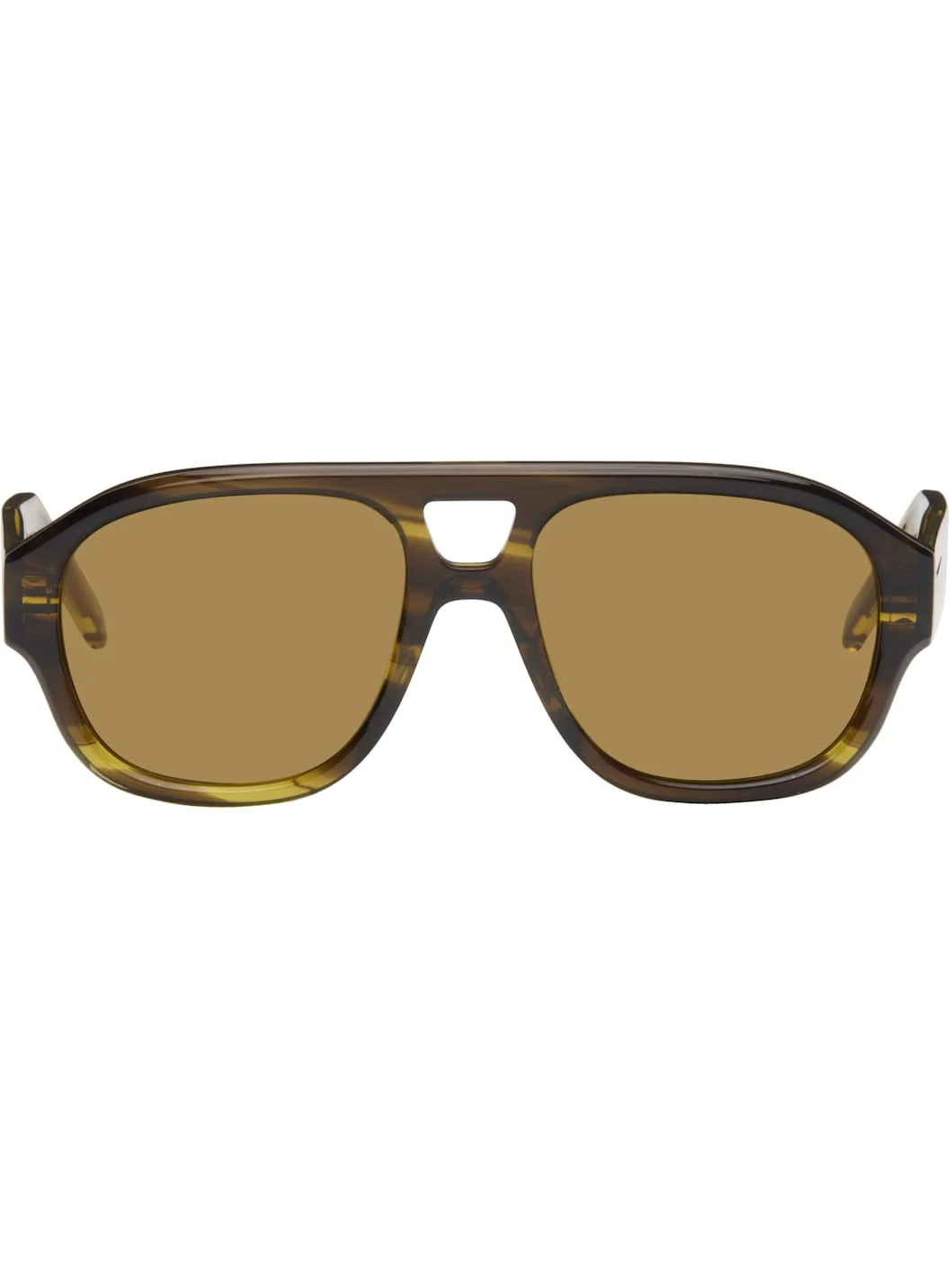 Aviator-style tortoiseshell semi-transparent acetate-frame sunglasses. · Brown lenses · 100% UVA/UVB protection, category 2 · Integrated nose pads · Double bridge · Logo plaque at temples · Core wires · Includes pouch · Size: 55.18 145 Supplier color: Brown Acetate. Made in Italy 261278F005008