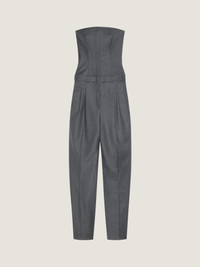 - Bustier tailored all-in-one in wool. - Bullet bra. - Hooks and zipped closure on the front. - Double pleat construction on the legs. - Two side pockets. - One back pocket. - Model measures 5.8 Feet and wears a size 36.
