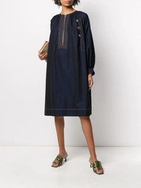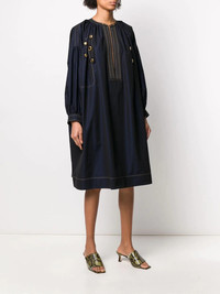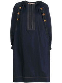 button details poplin dress Givenchy is the name; style is the game. Made from cotton, this navy blue dress has a round neck, long sleeves, a relaxed style, gold-tone hardware and a panel at the chest. Up your sartorial game. Made in Italy Composition Cotton 100% SIZE & FIT FittingInformation This piece fits true to size. We recommend you get your regular size Cut for a loose fit Made with a mid-weight non-stretch fabric Washing instructions Dry Clean Only